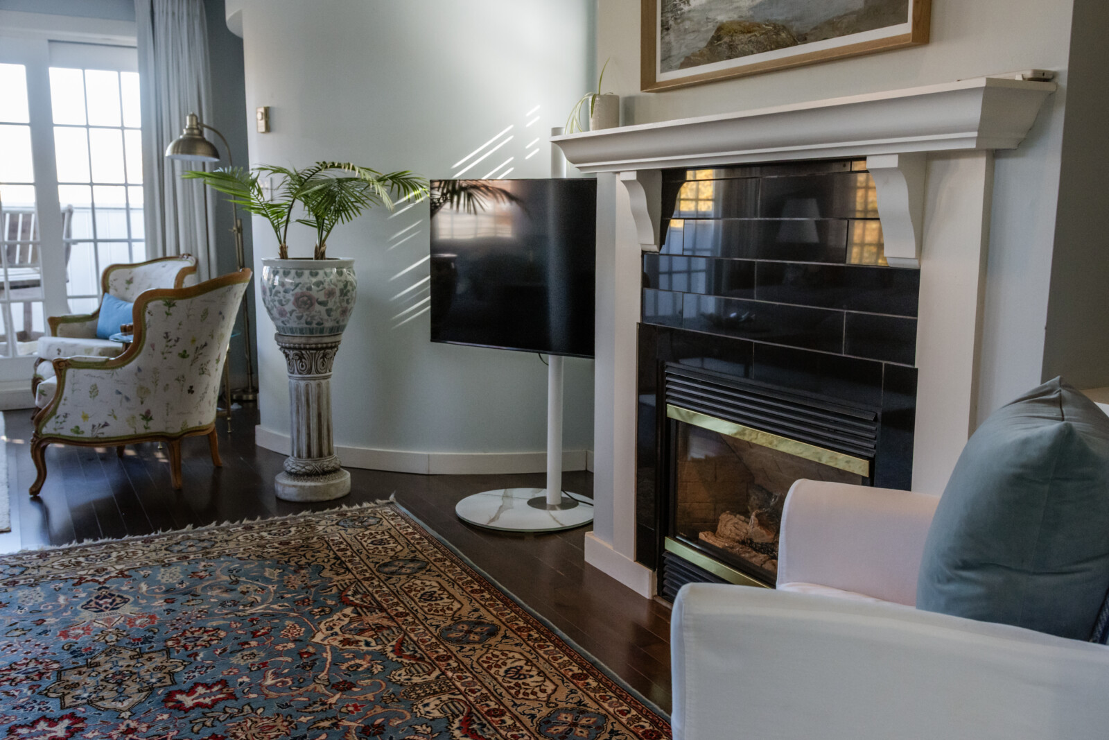 One of our very best rooms with a balcony, overlooking our grounds. Located in the North Tower, it's spacious and luxurious featuring a King sized bed, propane fireplace, outside seating area and a large remodeled bathroom that features a whirlpool bath and separate shower. Additional bedding: double pullout and space for 2 cots. Room rates are based on double occupancy. $750-$825/night.
