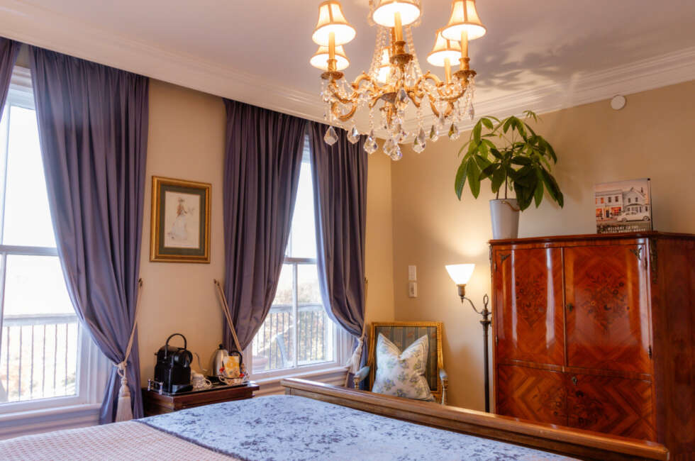 This luxuriously quaint room on our second floor overlooks the Fortune River and faces the famous Fortune Bridge. Decorated with fine French furnishings it features a Queen-sized bed, a gorgeous marble bathroom, soaker tub and a separate shower. This room will accommodate 2 guests comfortably. This room is located at The Inn at Fortune Bridge and is a two-minute drive from The Inn at Bay Fortune. Complimentary chauffeur service is offered travelling to the FireWorks Feast for dining. Check-in is at the Fortune Bridge House. Premium Turndown Service.