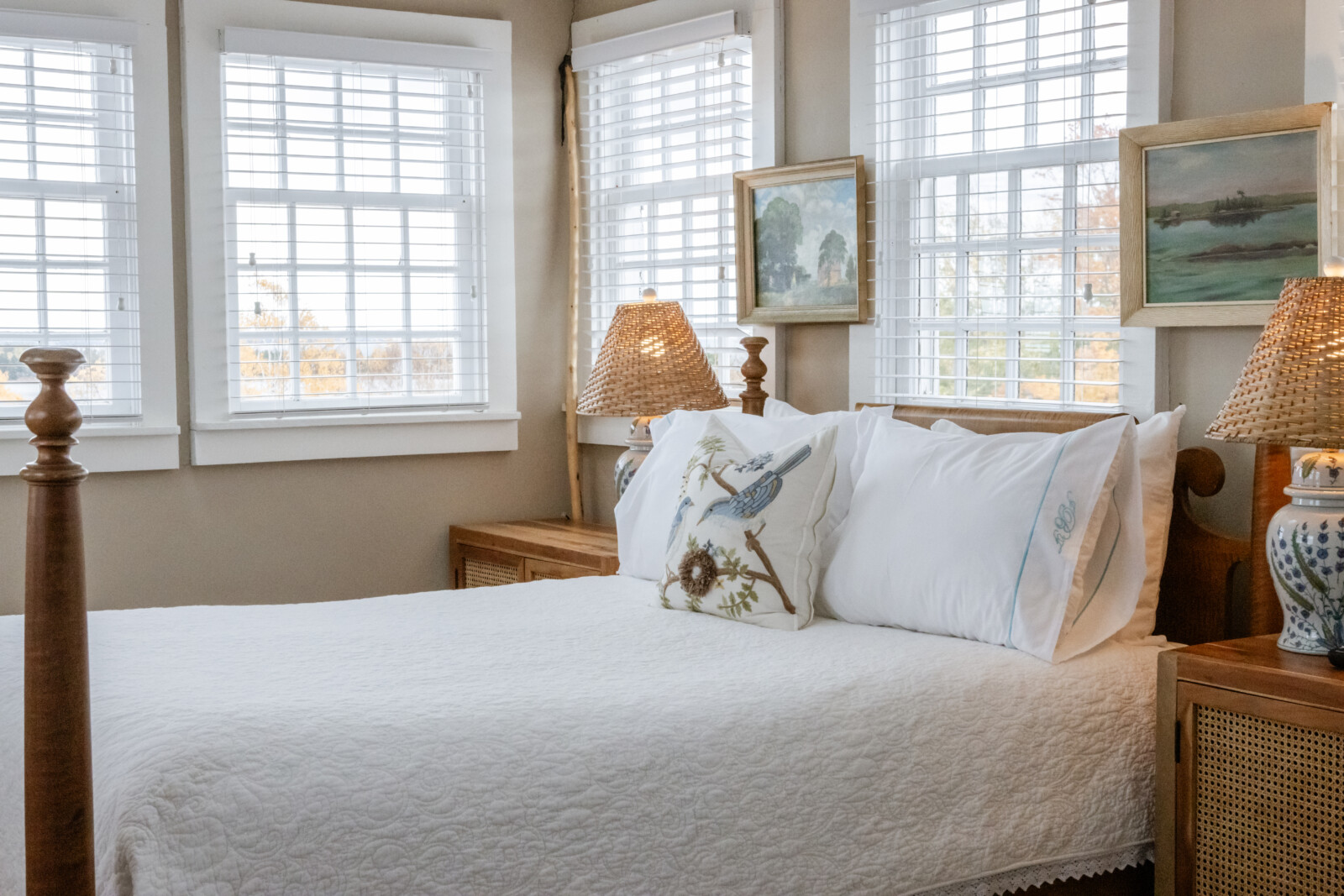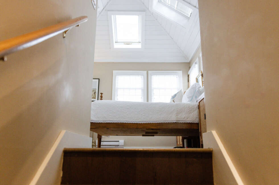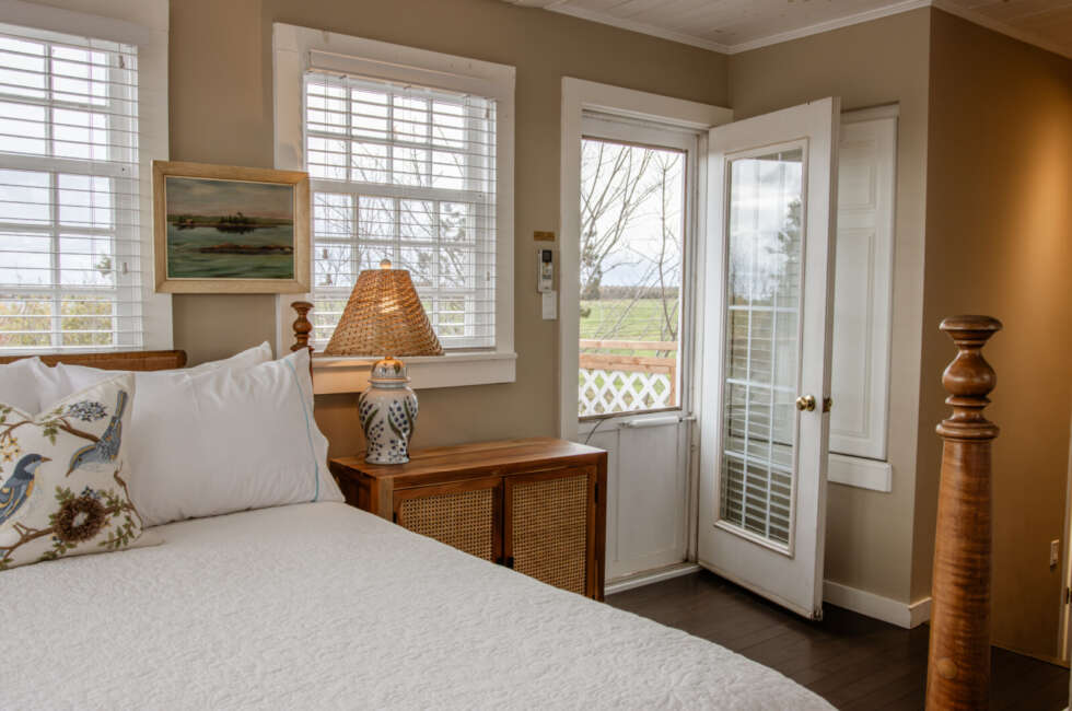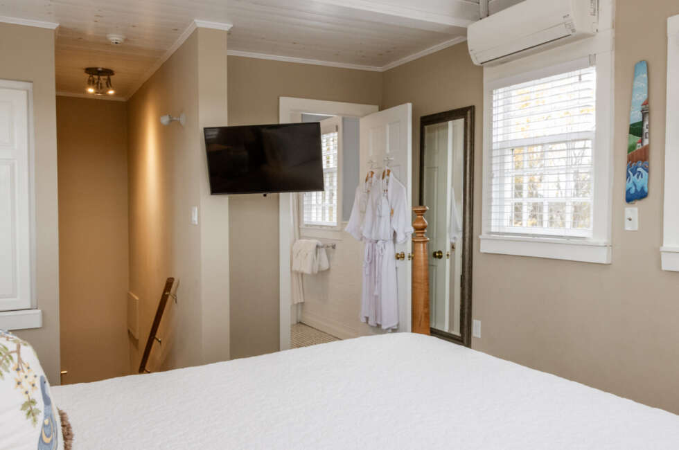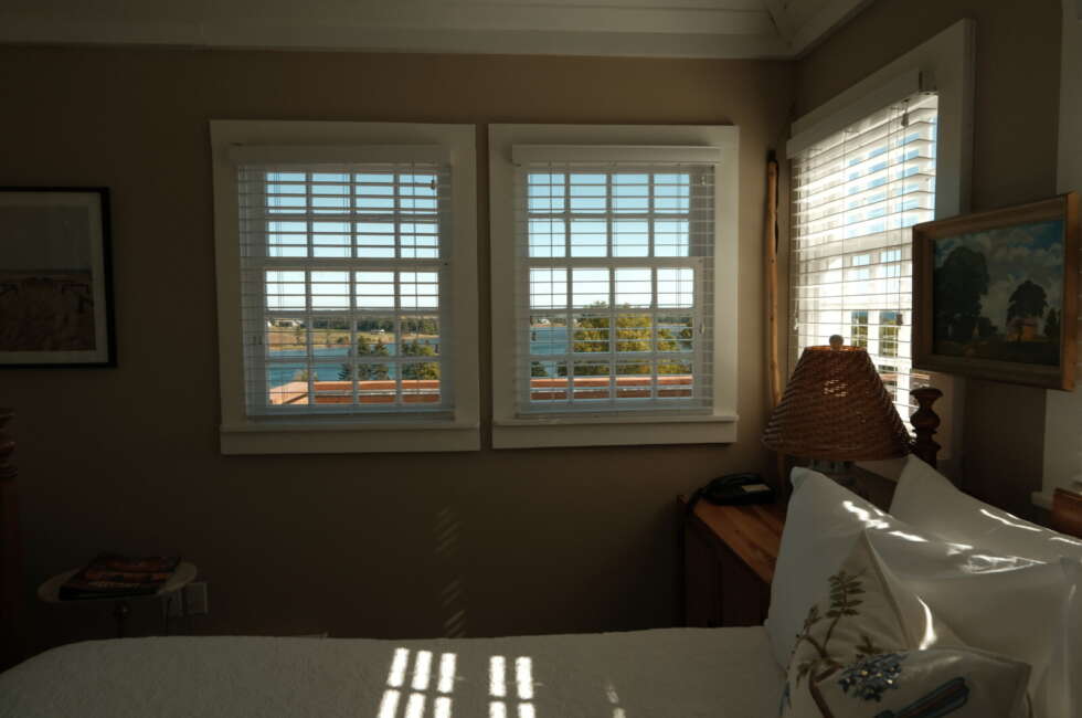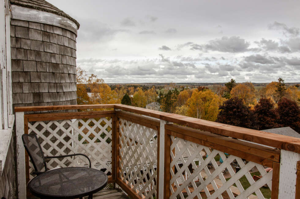At the top of the historic water tower now known as the South Tower, The Crow's Nest features a vaulted ceiling with skylights, an L-shaped balcony and an amazing view of Fortune Harbour. 1 Queen sized bed suitable for 2 adults and 1 infant. Room rates are based on double occupancy. $575-$700/night.
